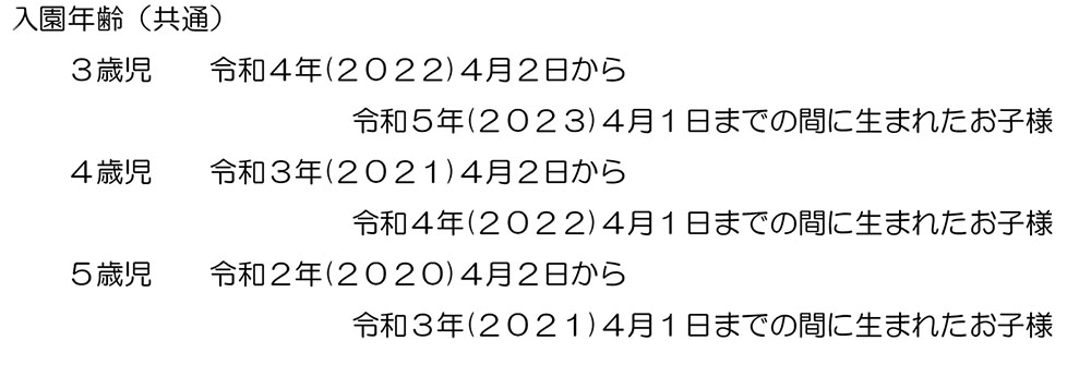 令和8年度入園対象時は以下の通りです。