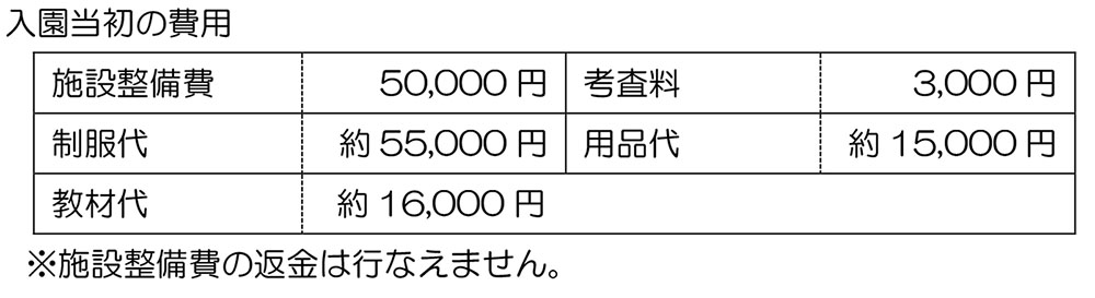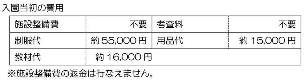 ★物価高騰に伴い、入園説明会以降にも値上げをさせていただく場合があります。ご了承ください。